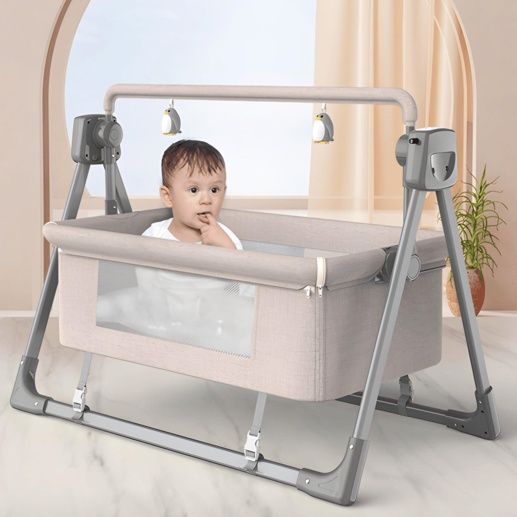 MUSIC SYSYEM WITH BLUETOOTH - Keep your babies distracted with our baby cradle's music system. By this way, your baby is always entertained and you can enjoy doing your own things!